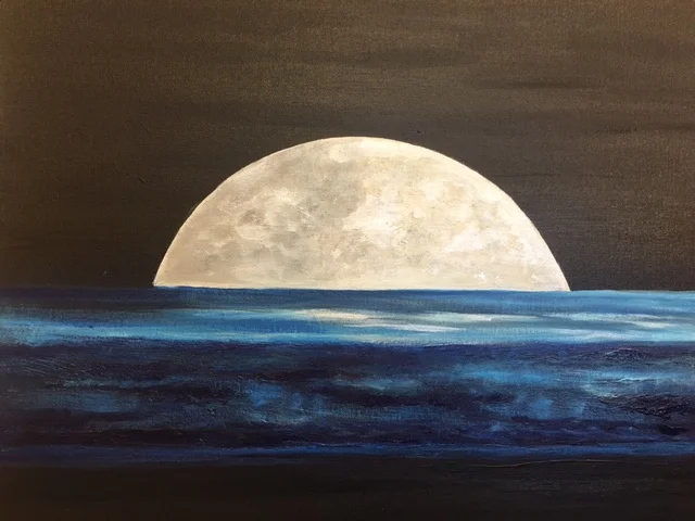Gratitude for those who pursue careers or lives of bravery to protect others. Deep blues with black background and a wonderful brave moon.