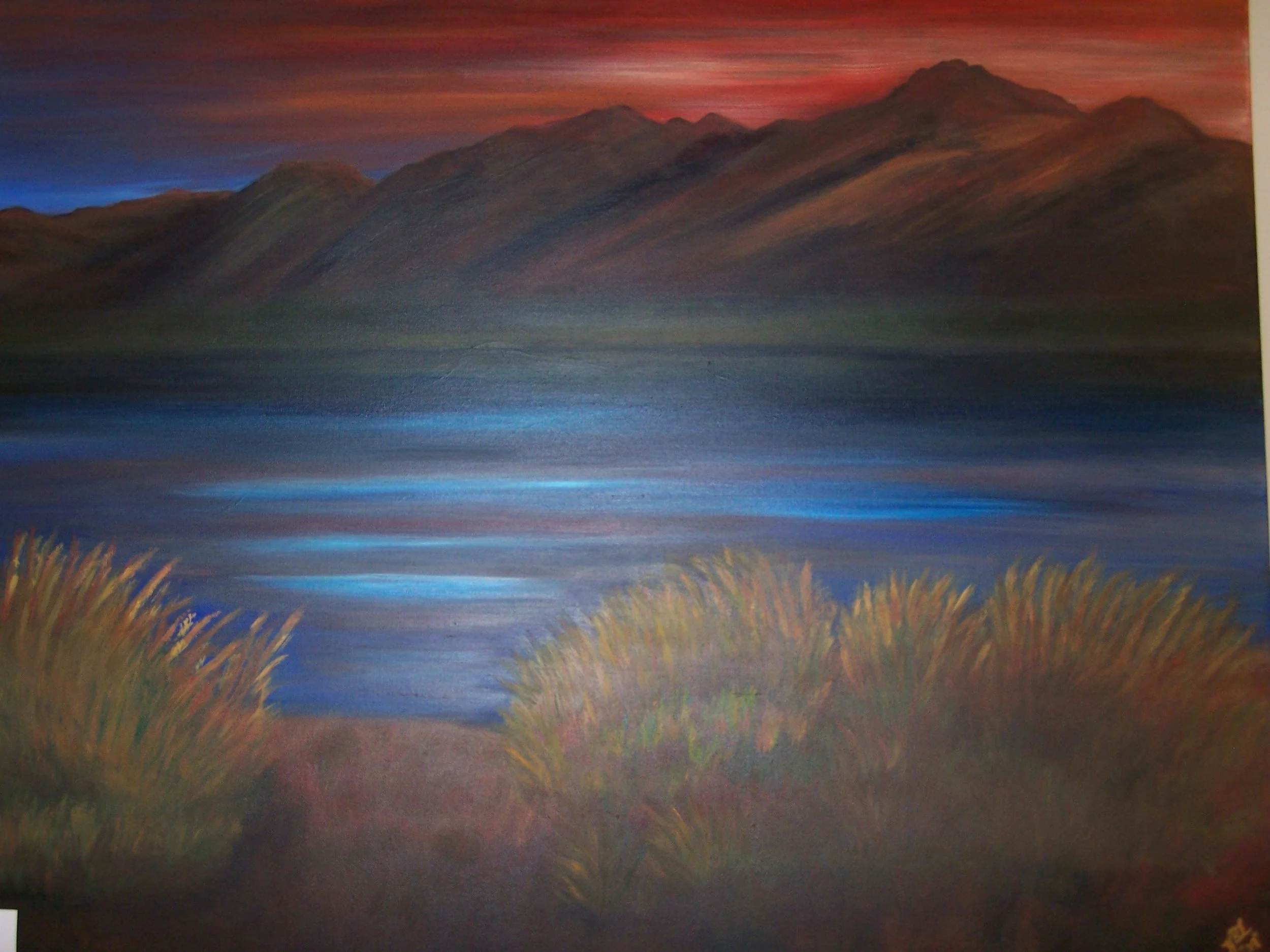 Lake evening in deep hues with a feel of peace and contentment. Sold but can recreate or personalize.
