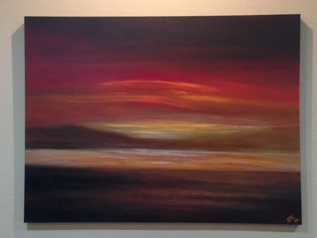 Peaceful evening sunset with warm tones and a feeling of contentment.